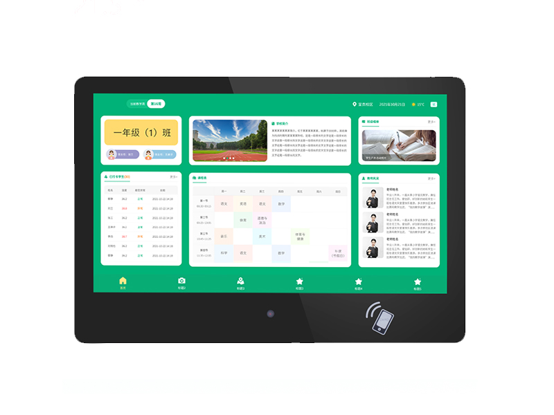1. 整機(jī)設(shè)計(jì):采用窄邊框圓角設(shè)計(jì),防止學(xué)生意外撞傷、便于安裝使用。 2. 機(jī)器采用內(nèi)置天線設(shè)計(jì),無(wú)任何天線外露。 3. 采用21.5英寸電容顯示屏,支持10點(diǎn)觸控,屏幕分辨率≥1920*1080,顯示比例16:9,面板亮度:≥350cd/cm2(亮度要求提供第三方檢測(cè)報(bào)告)。 4. 采用瑞芯微 RK3288 芯片,CPU1.8GHz主頻;系統(tǒng)運(yùn)行內(nèi)存不低于2G,存儲(chǔ)容量不低于8G;具備4K超高清解碼;高性能、低功耗 CPU平臺(tái)支